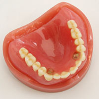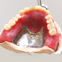 チタン金属床義歯(保険適用外) 生体親和性のあるチタンを使用し、薄くて軽く、強度のある材質でできた義歯です。
